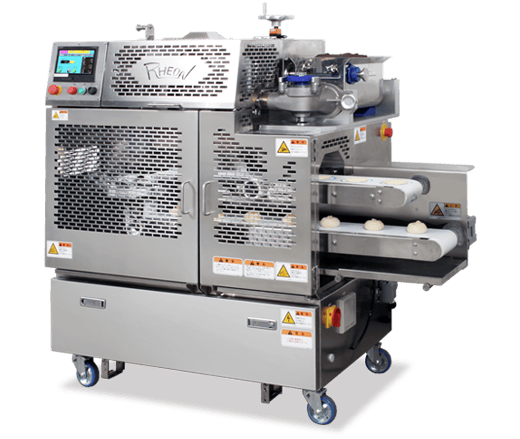 This compact encrusting system automates the encrusting process for red bean buns, curry buns, and other types of breads. Maximum production is 1,200 pcs./h, and products can weigh is 50 – 200 g.