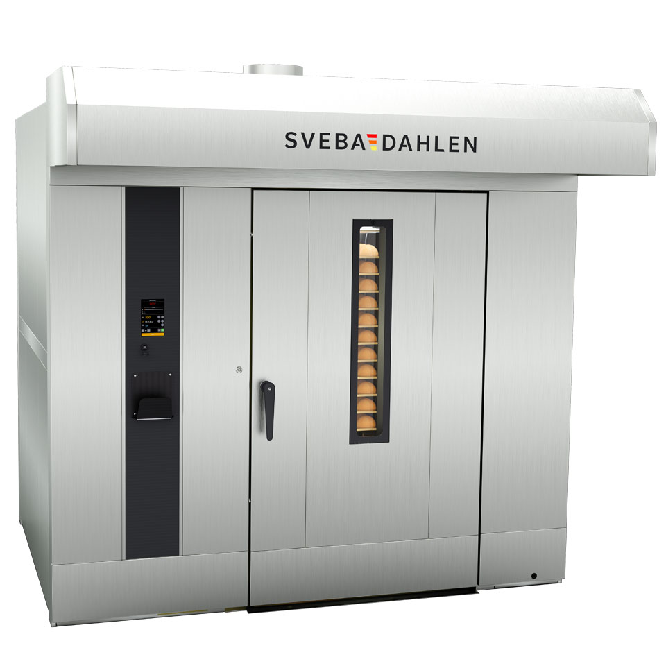 The rack oven is available with the famous and often copied Sveba Dahlen suspension hook (depending on model), automatic rack lifting device and rotating platform with adjustable ramp. All bakery oven models have a wide variety of options to make the bakery oven adaptable to your bakery.